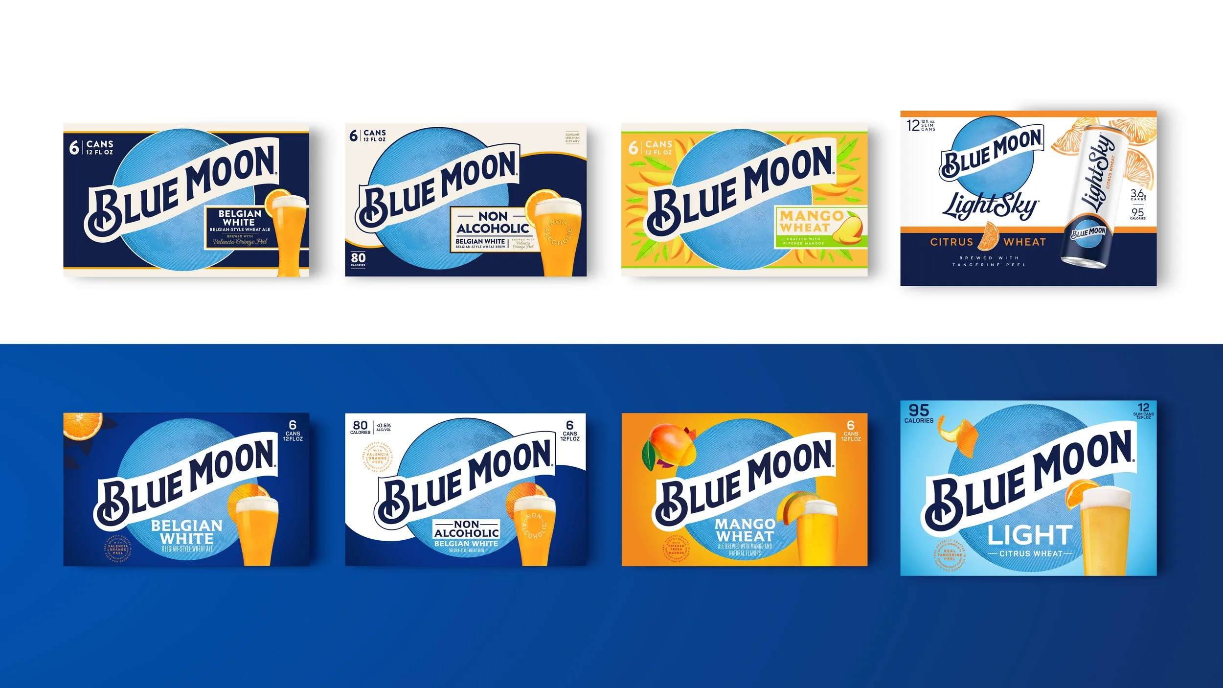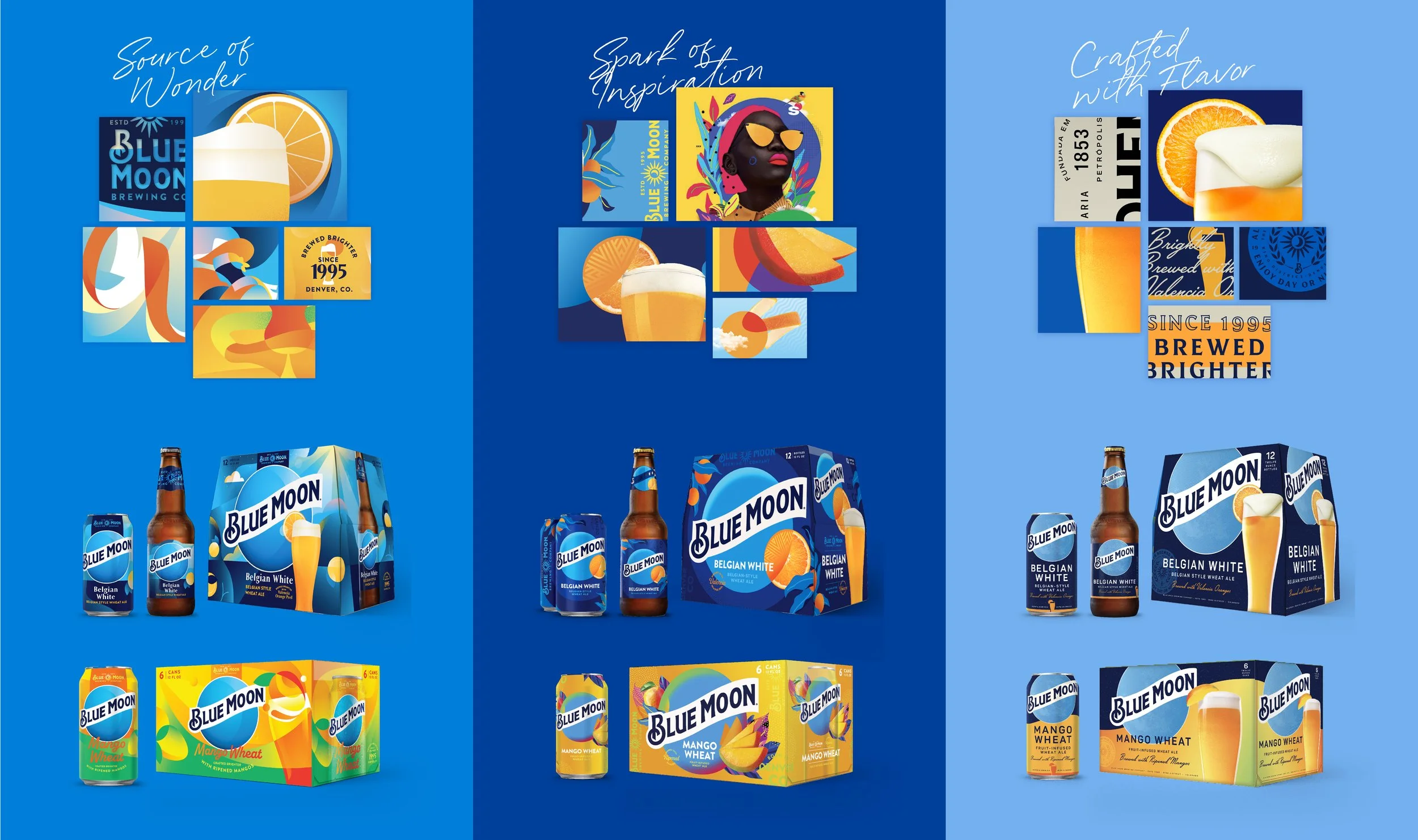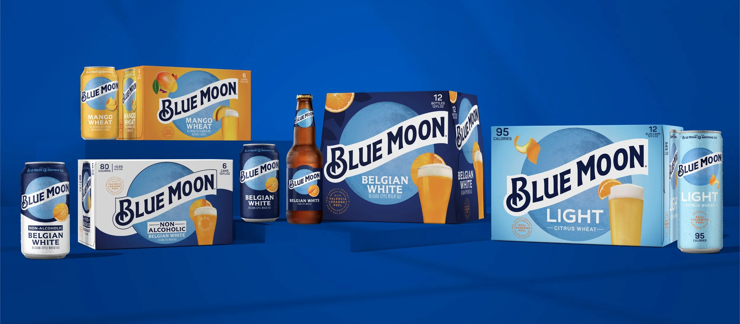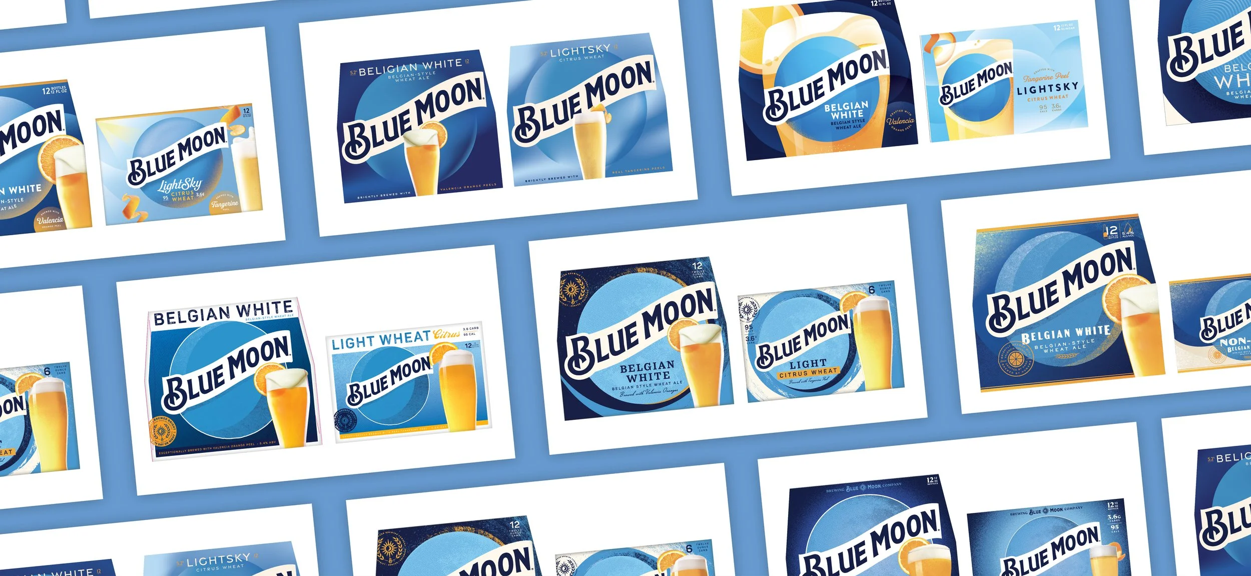 The redesign develops a visual identity system that unifies the packaging for the family of brands and extended across consumer touch-points. The design system incorporates an inspiration of brightness and creativity from the moon, while creating crafted storytelling moments that tie to the brewing credentials of the Blue Moon Brewing Co.