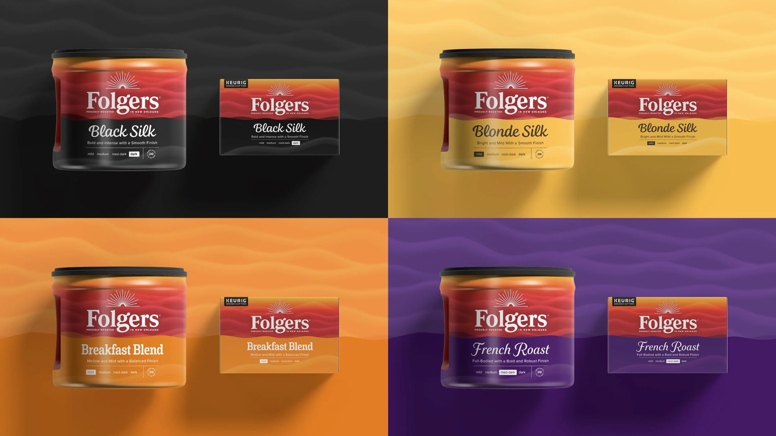 The redesign creates an immersive experience that celebrates the morning aroma of coffee with the transformative evolution of the iconic Folgers mountains. The warming glow brings forward the historic “Best Part of Wakin’ Up” into an uplifting moment in every morning.