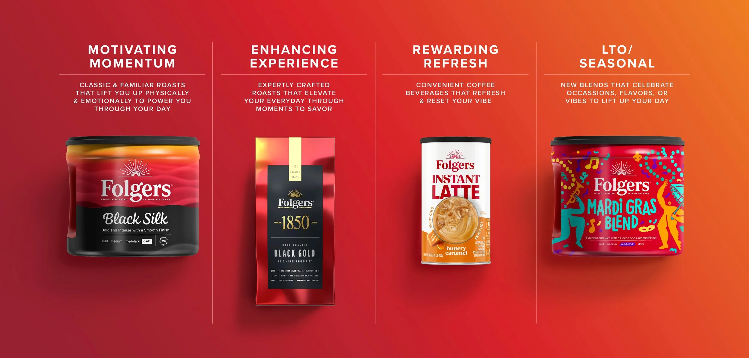 Folgers is a legacy brand that has become a household name, offering a diverse range of coffee products. As the brand dates back to 1850, the evolution of this brand to make its way into modern day was essential for the brand to grow with its current consumers but also expand into the homes of younger generations.