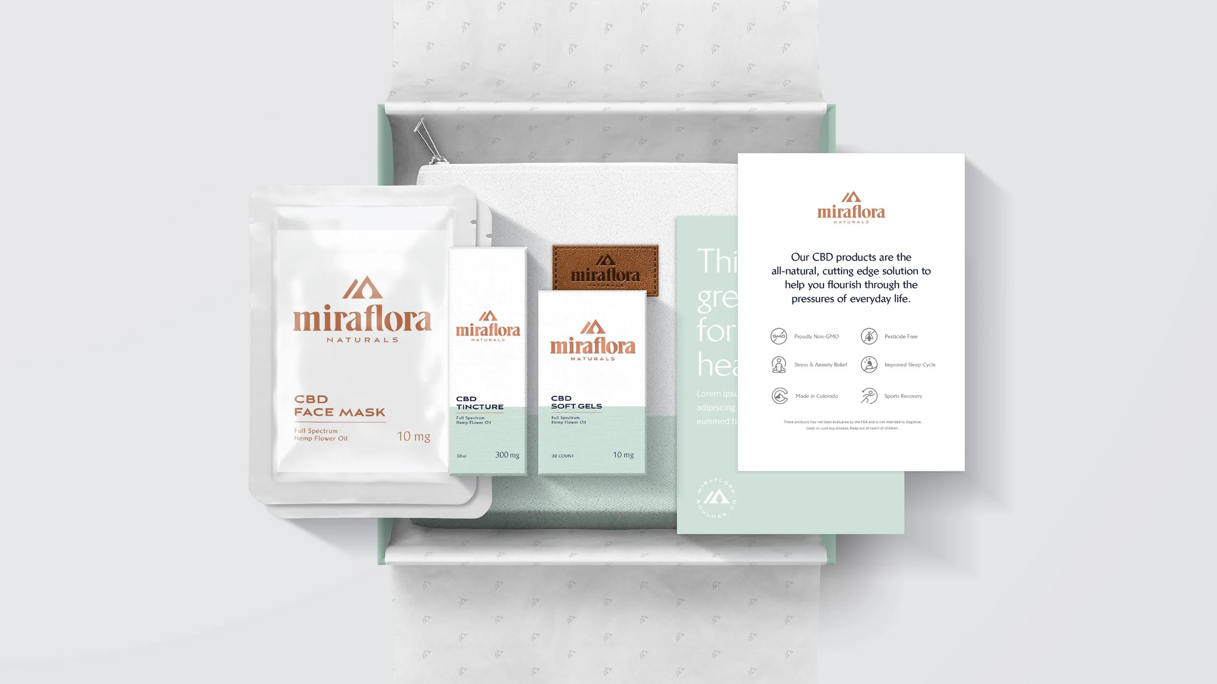 With the world of natural health growing more every year, Miraflora was a brand created to fill the gap and carry through the calming quality of CBD. The task was to create a brand that brought the efficacy of the vitamin world with the tranquility of natural CBD.