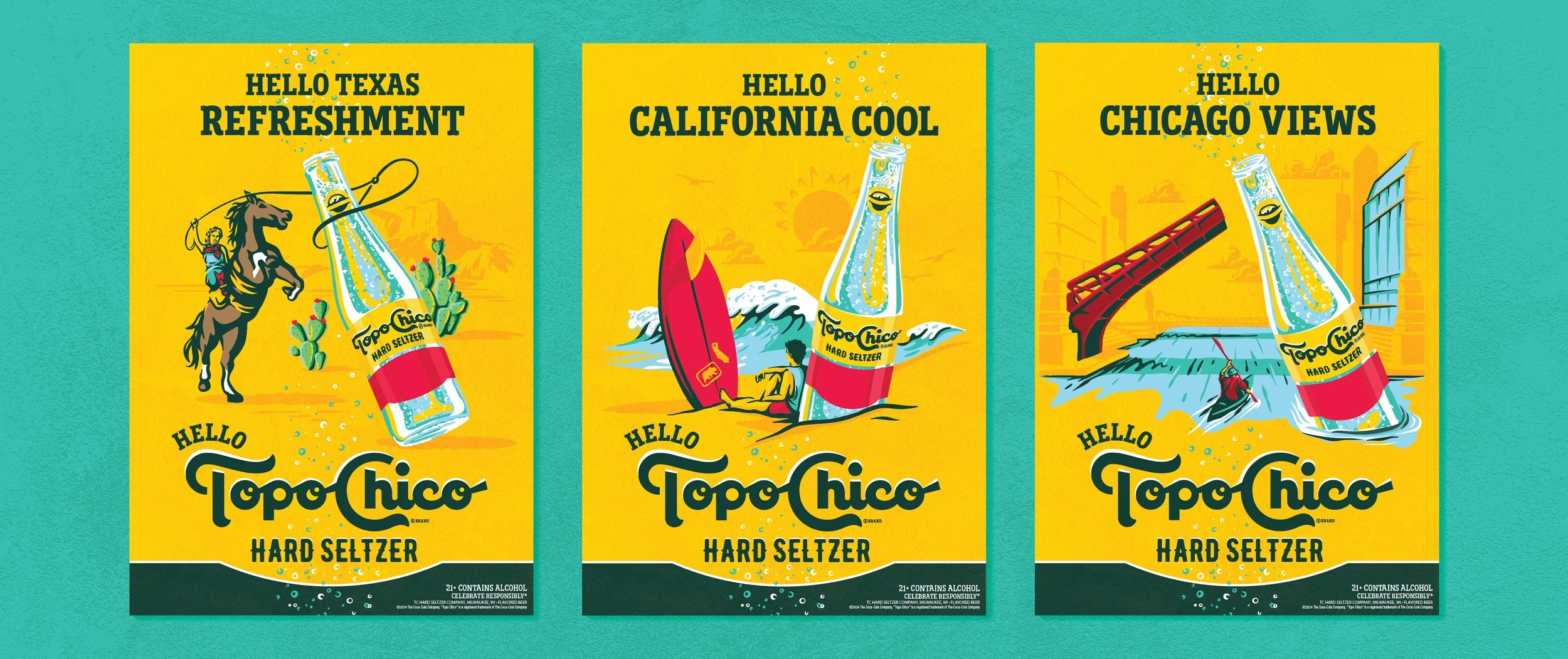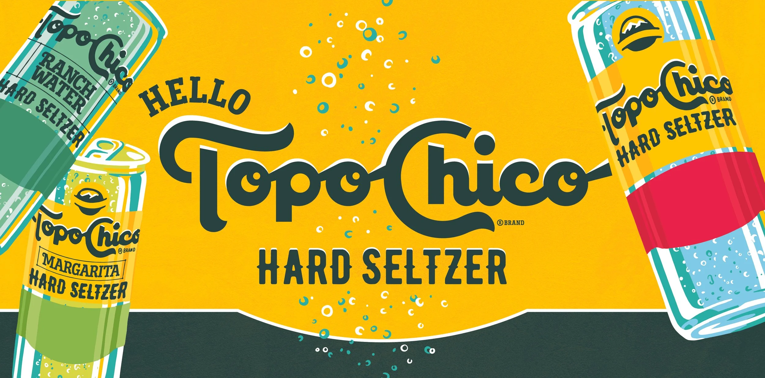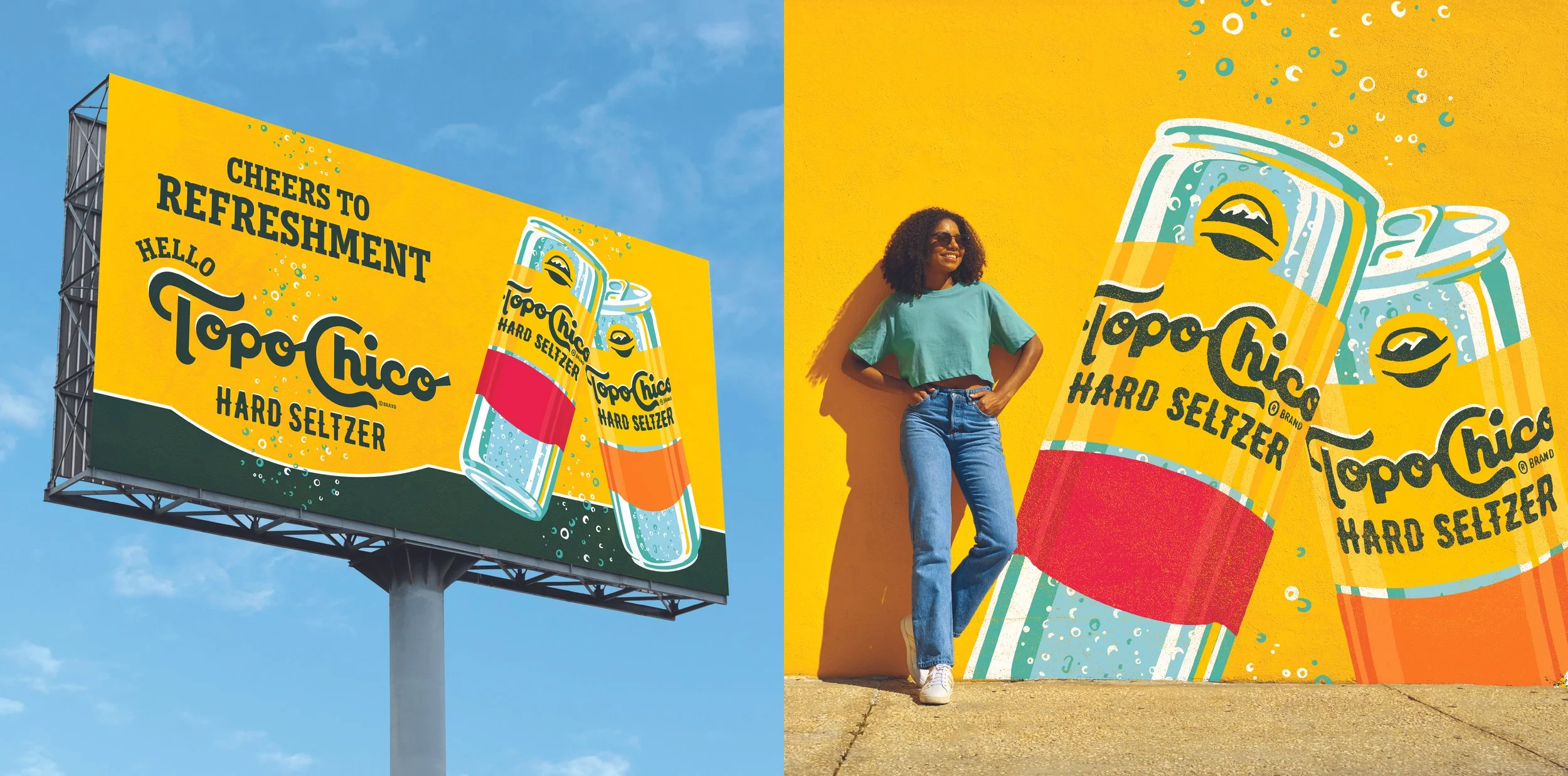 Our team was tasked to bring in the unspoken cool-factor and heritage of the Topo Chico brand, celebrate an Austin-cool vibe, and uplift the Topo Chico product with lightness and refreshment. The Vis ID system is used for all out of home applications and touchpoints.